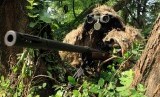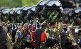 Dua prajurit pasukan khusus dari Kompi Charlie Yon Taifib-1 Marinir, melakukan latihan sniper dan komando hutan, saat HUT ke-54 Taifib Korps Marinir di Bhumi Marinir Karangpilang, Surabaya, Jumat (13/3). (Antara/HO/Sertu Mar Kuwadi)