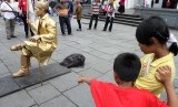 REPUBLIKA.CO.ID, JAKARTA -- Aksi manusia patung mampu menghibur dan menarik perhatian warga yang berkunjung ke kawasan Kota Tua Jakarta. TIdak sedikit pengunjung yang rela menyisihkan uang demi berfoto bersama sang manusia patung.