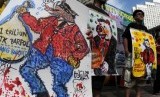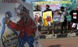 REPUBLIKA.CO.ID, JAKARTA -- Massa yang tergabung dalam Pijar Indonesia menggelar lukisan para koruptor di Bundaran HI, Jakarta, Ahad (15/3). Mereka mengajak masyarakat untuk melawan koruptor dalam kampung anti korupsi.