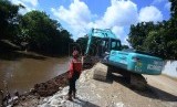 REPUBLIKA.CO.ID, JAKARTA -- Pekerja bersama alat berat melakukan proses normalisasi Kali Ciliwung di Kawasan Pancoran, Jakarta Selatan, Senin (16/3).