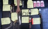 REPUBLIKA.CO.ID, JAKARTA -- Direktorat Reserse Kriminal Umum Polda Metro Jaya berhasil menangkap 6 tersangka pencurian dan kekerasan di dalam truk dan muatannya di jalan tol dengan barang bukti sejumlah senjata tajam, dua buah pistol mainan, empat unit handphone dan uang tunai Rp. 2.200.000.