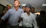 Terdakwa Kabul Basuki alias Tessy (kanan) saat akan menjalani sidang perdana kasus penyalahgunaan narkoba di Pengadilan Negeri Bekasi, Jawa Barat, Rabu (18/3). (Antara/Ivan Pramana Putra)