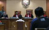 Terdakwa Kabul Basuki alias Tessy (tengah) menjalani sidang perdana kasus penyalahgunaan narkoba di Pengadilan Negeri Bekasi, Jawa Barat, Rabu (18/3). (Antara/Ivan Pramana Putra)