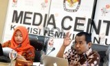 REPUBLIKA.CO.ID, JAKARTA -- Direktur Eksekutif Perludem Titi Anggraini, dan Ketua Perludem Didik Supriyanto menjadi pembicara saat diskusi di KPU, Jakarta, Kamis (19/3).