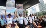 Grup band, Slank membawa poster pentingnya air saat peringati Hari Air Internasional di Jakarta, Ahad (22/3). (Republika/Agung Supriyanto)