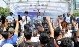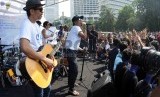Grup band, Slank beraksi menyanyikan sejumlah lagu saat aksi peringati Hari Air Internasional di Jakarta, Ahad (22/3). (Republika/Agung Supriyanto)