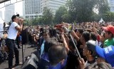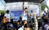 REPUBLIKA.CO.ID, JAKARTA -- Grup band, Slank beraksi menyanyikan sejumlah lagu saat aksi peringati Hari Air Internasional di Jakarta, Ahad (22/3).