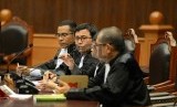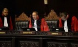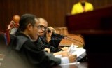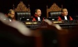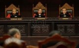 REPUBLIKA.CO.ID, JAKARTA -- Hakim Konstitusi Patrialis Akbar, Suhartoyo, dan Aswanto memimpin sidang di Gedung Mahkamah Konstitusi, Jakarta, Senin (23/3).