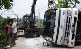 Muatan truk yang cukup berat menyebabkan truk tidak kuat menanjak dan terguling.