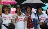 Massa buruh yang mengatasnamakan Jaringan Nasional Advokasi Pekerja Rumah Tangga (Jala PRT) menggelar aksi di depan Gedung DPR/MPR RI, Jakarta, Selasa (24/3). (Republika/Agung Supriyanto) (FOTO : Republika/Agung Supriyanto)
