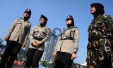 REPUBLIKA.CO.ID, JAKARTA -- Polisi wanita (polwan) dari berbagai unsur mengenakan seragam dinas hijab saat diperkenalkan ke publik di Silang Monas, Jakarta, Jumat (27/3).