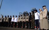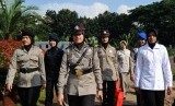?Polisi wanita (polwan) dari berbagai unsur mengenakan seragam dinas hijab saat diperkenalkan kepublik di Silang Monas, Jakarta, Jumat (27/3). (Republika/Tahta Aidilla)