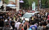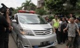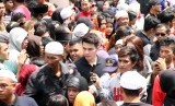 REPUBLIKA.CO.ID, JAKARTA -- Warga memadati rumah duka saat menanti kedatangan jenazah Olga Syahputra di kawasan Duren Sawit, Jakarta Timur, Sabtu (28/3).