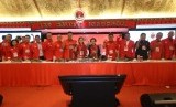Susunan pengurus inti PDI Perjuangan periode 2015-2020 diperlihatkan pada Kongres IV PDI Perjuangan di Hotel Inna Grand Bali Beach, Sanur, Bali, Jumat (10/4). (Republika/Tahta Aidilla) (FOTO : Republika/ Tahta Aidilla)
