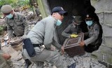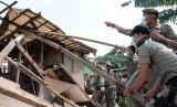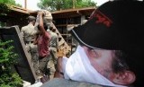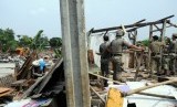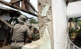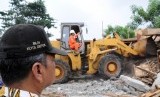 REPUBLIKA.CO.ID, DEPOK -- Petugas Satpol PP bersama Dinas Kebersihan dan Pertamanan (DKP) Kota Depok membongkar 65 bangunan liar di sepanjang jalur pipa gas Beji, Depok, Selasa (14/4).