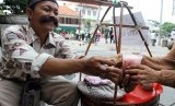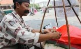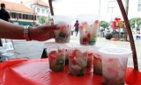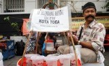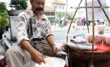 REPUBLIKA.CO.ID, JAKARTA - Pedagang Selendang Mayang, Suhartoyo (48) menjajakan minuman khas Betawi di kawasan Kota Tua, Jakarta, Senin (20/4).