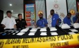 Polisi berhasil menyita 14,5 kilogram sabu senilai Rp 29 miliar, sembilan ponsel, tiga buku tabungan, satu unit alat timbang digital, dan kartu pengenal dari lima tersangka, dan dijerat pasal 114 ayat 2 juncto pasal 132 ayat dengan ancaman hukuman mati atau penjara seumur hidup.