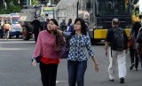 Pekerja berjalan kaki saat akan berangkat kerja di kawasan JL MH Tahmrin, Jakarta, Rabu (22/4). (Tahta Aidilla/Republika.) (FOTO : Republika/ Tahta Aidilla)