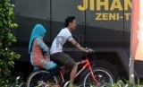 Pekerja mengunakan sepeda saat akan berangkat kerja di kawasan JL MH Tahmrin, Jakarta, Rabu (22/4). (Tahta Aidilla/Republika.) (FOTO : Republika/ Tahta Aidilla)