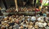 REPUBLIKA.CO.ID, TASIKMALAYA -- Pedagang bongkahan batu akik menunggu calon pembeli di Kampung Cibarengkok, Kecamatan Bantarkalong, Tasikmalaya, Jawa Barat, Rabu (22/4).