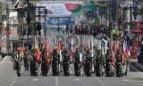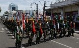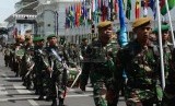 REPUBLIKA.CO.ID, BANDUNG -- Sejumlah anggota pemain marching band dari TNI melakukan gladi resik di sepanjang Jalan Asia Afrika, Bandung, Jawa Barat, Kamis (23/4).