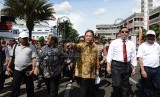 REPUBLIKA.CO.ID, BANDUNG -- Gubernur Jawa Barat, Ahmad Heryawan bersama Kepala Staf Kepresidenan, Luhut Panjaitan, dan Wali Kota Bandung, Ridwan Kamil meninjau kesiapan peringatan ke-60 Konferensi Asia Afrika di Jalan Asia Afrika, Bandung, Jawa Barat, Kamis (23/4).