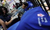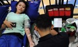 REPUBLIKA.CO.ID, DEPOK -- Sejumlah pengunjung pusat perbelanjaan antusias mengikuti acara donor darah yang diselenggarakan PMI di Depok Town Square, Depok, Jawa Barat, Kamis (23/4).