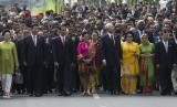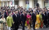 REPUBLIKA.CO.ID, JAKARTA -- Presiden Joko Widodo bersama sejumlah pemimpin negara peserta KTT Asia Afrika berjalan bersama saat melakukan "Historical Walk" dalam peringatan ke-60 tahun Konferensi Asia Afrika di jalan Asia Afrika, Bandung, Jumat, (24/04). (Antara)