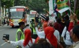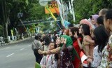 REPUBLIKA.CO.ID, BANDUNG -- Sambil mengibarkan bendera negara-negara Asia dan Afrika, ribuan warga dan para pelajar Kota Bandung menyambut kedatangan pejabat negara dan para delegasi Peringatan Konferensi Asia Afrika (KAA) ke-60 di Gedung Merdeka, Kota Bandung, Jumat (24/4).