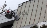 REPUBLIKA.CO.ID, JAKARTA -- Petugas pemadam kebakaran berusaha mengambil sisa dinding pelat alumunium yang hampir rubuh di gedung Sekretariat Jenderal DPR, Senayan, Jakarta, Jumat (24/4).