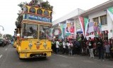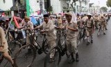 REPUBLIKA.CO.ID, BANDUNG -- Ribuan warga Bandung memadati Jalan Asia Afrika, Sabtu (25/4). Mereka antusias menyaksikan Parade Asia Afrika, yang merupakan salah satu acara pendukung Konferensi Asia Afrika yang menampilkan kebudayaan dari dua benua.