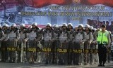 Puluhan ribu pasukan pengamanan mengikuti apel di lapangan Polda Metro Jaya, Jakarta Selatan, Rabu (29/4). (Republika/Raisan Al Farisi) (FOTO : Republika/Raisan Al Farisi)