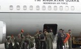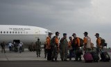 Tim bantuan kemanusiaan Indonesia bersiap diberangkatkan ke Nepal di base ops Lanud Halim Perdanakusuma, Jakarta, Rabu (29/4). (Antara/Rosa Panggabean)