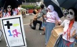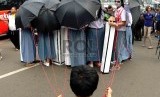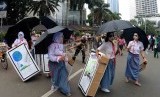 REPUBLIKA.CO.ID, JAKARTA -- Sejumlah mahasiswa dari Universitas Trisakti menggelar aksi memperingati 17 tahun reformasi di Bundaran HI, Jakarta, Ahad (3/5).