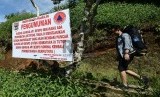?Seorang pendaki turun dari pintu rimau Gunung Dempo, Kabupaten Pagar Alam, Palembang, Sumatera Selatan, Sabtu (2/5). (Republika/Raisan Al Farisi)