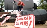 REPUBLIKA.CO.ID, JAKARTA -- Anggota Aliansi Jurnalistik Independen (AJI) mengikuti aksi Hari Kebebasan Pers Sedunia di Taman Menteng, Jakarta Pusat, Ahad (3/5).