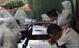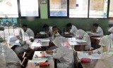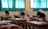 Pelajar mengerjakan soal Ujian Nasional di sekolah MTSN 9, Johar Baru, Jakarta Pusat, Senin (4/5). (Republika/Tahta Aidilla)