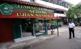 Petugas keamanan berjaga dilingkungan saat Ujian Nasional berlangsung di sekolah MTSN 9, Johar Baru, Jakarta Pusat, Senin (4/5). (Republika/Tahta Aidilla)