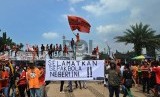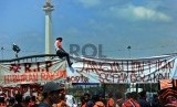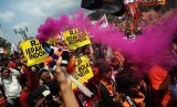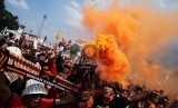 REPUBLIKA.CO.ID, JAKARTA -- Penggemar sepak bola Persija Jakarta (The Jakmania) melakukan unjuk rasa di depan Istana Negara, Jakarta, Selasa (5/5).