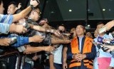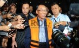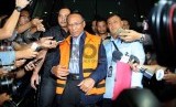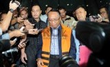 REPUBLIKA.CO.ID, JAKARTA -- Menteri Energi dan Sumber Daya Mineral (ESDM) Jero Wacik mengenakan rompi tahanan usai menjalani pemeriksaan lanjutan di Gedung KPK, Jakarta, Selasa (5/5).