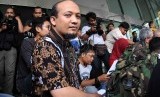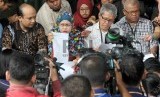 Penyidik KPK, Novel Baswedan (kiri) bersama Tim Pengacara memberikan keterangan kepada wartawan terkait gugatan praperadilan di depan Gedung KPK, Jakarta, Ahad (10/5). (Republika/Agung Supriyanto)