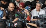 REPUBLIKA.CO.ID, JAKARTA -- Penyidik KPK, Novel Baswedan bersama Ketua Tim Pengacara Novel, Mudji Kartika Rahayu memberikan keterangan kepada wartawan terkait gugatan praperadilan di depan Gedung KPK, Jakarta, Ahad (10/5).