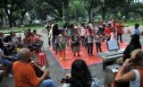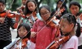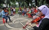 REPUBLIKA.CO.ID, JAKARTA --Sejumlah anggota Taman Suropati Chamber berlatih jelang konser mereka di Taman Suropati, Jakarta Pusat, Ahad (10/5).