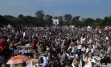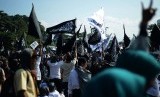 REPUBLIKA.CO.ID, BANDUNG -- Sejumlah massa yang tergabung dalam Hizbut Tahrir Indonesia (HTI) saat rapat dan pawai akbar (RPA) 2015 dengan tajuk "Bersama Umat Tegakkan Khilafah" di Lapangan Gasibu, Kota Bandung, Kamis (14/5).