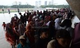 REPUBLIKA.CO.ID, JAKARTA -- Pengunjung antre untuk menuju Puncak Monumen Nasional, Jakarta Pusat, Kamis (14/5).