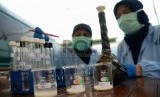 Petugas lab Balai Besar Pengawasan Obat dan Makanan (BPOM) melakukan uji sampel beras di Pasar Induk Cipinang, Jakarta Timur, Rabu (27/5). (Republika/Prayogi) (FOTO : Republika/Prayogi)