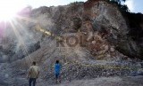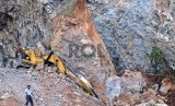 REPUBLIKA.CO.ID, CILEGON -- Sebuah alat berat eskavator tertiban longsor batu saat melakukan penambangan batu Bukit Cikuasa, Banten, Kamis (28/5).