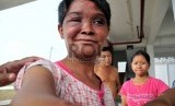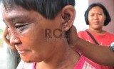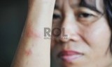 Seorang korban serangan serangga Tomcat, Susan (25) mengalami luka di bagian leher dan matanya di Rusun Daan Mogot, Jakarta Barat, Jumat (29/5). (Republika/Rakhmawaty La'lang) (FOTO : Republika/Rakhmawaty La'lang)