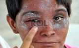 Serangan Tomcat Seorang korban serangan serangga Tomcat, Susan (25) mengalami luka di bagian matanya di Rusun Daan Mogot, Jakarta Barat, Jumat (29/5) (Republika/Rakhmawaty La'lang). (FOTO : Republika/Rakhmawaty La'lang)