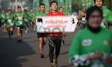 REPUBLIKA.CO.ID, JAKARTA -- Ribuan peserta mengikuti lomba lari Jakarta International 10K 2015 di Silang Barat Daya Monas, Jakarta Pusat, Ahad (31/5).